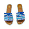 The color of these flats reminds us of the deep blue waters on iconic Greek island Mykonos. Stroll along the beaches or the picturesque little towns with these trendy shoes, hand crafted with dozens of little beads and details in raffia and combine with our matching bags.