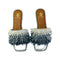 Chi l'ha detto che le ciabatte non possono essere glam come i tacchi? Questa coppia bling bling in tonalità di colore verde è sormontata da dozzine di perline con effetto degradato che conferiscono un tocco elegante. Di giorno o di notte, ti hanno coperto. Realizzate a mano e caratterizzate da una comoda suola in cuoio.