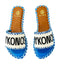 Welcome to Saint Tropez. You'll catch us wearing these flat sandals during our vacation in Saint Tropez, heading to the beach for a sunset party. Hand crafted with dozens of little beads and eye catching embroidered sole, these flats in deep blue are the best companions for a fun night out. Match with its bracelet and enjoy.