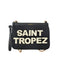 Welcome to Saint Tropez. You'll catch us wearing these fussbett slides during our vacation in Saint Tropez, heading to the beach or for a stroll through town. Hand crafted with canvas and letters in leather, these very comfy flats in black and white are the best companions for a fun day. Combine with our matching pochette bag.